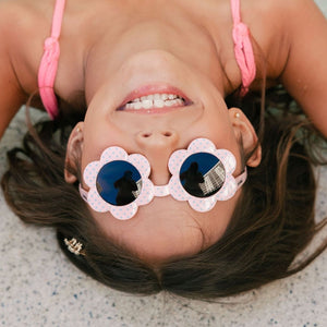 Our cute-as-can-be DAISY flower sunnies in pastel pink with aqua spots are a perennial hit with everyone! Not only do the frames look fab but they are fitted with the highest quality impact resistant Polycarbonate lenses and provide 100% Ultraviolet protection (Category 3) in compliance with Australian Standards AS/NZS:1067